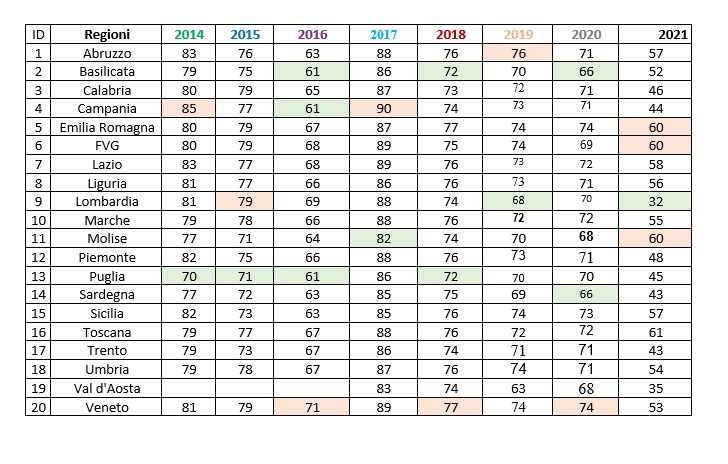 Contestualmente il punteggio MASSIMO per entrare nel 2021 è stato proprio di 60 punti, mentre l’anno precedente in alcune regioni servivano anche più di 70 punti.