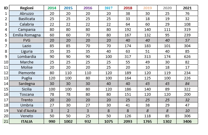 Nel 2021 ci sono state regioni in cui c’erano più borse che partecipanti al concorso e sono addirittura avanzate delle borse.